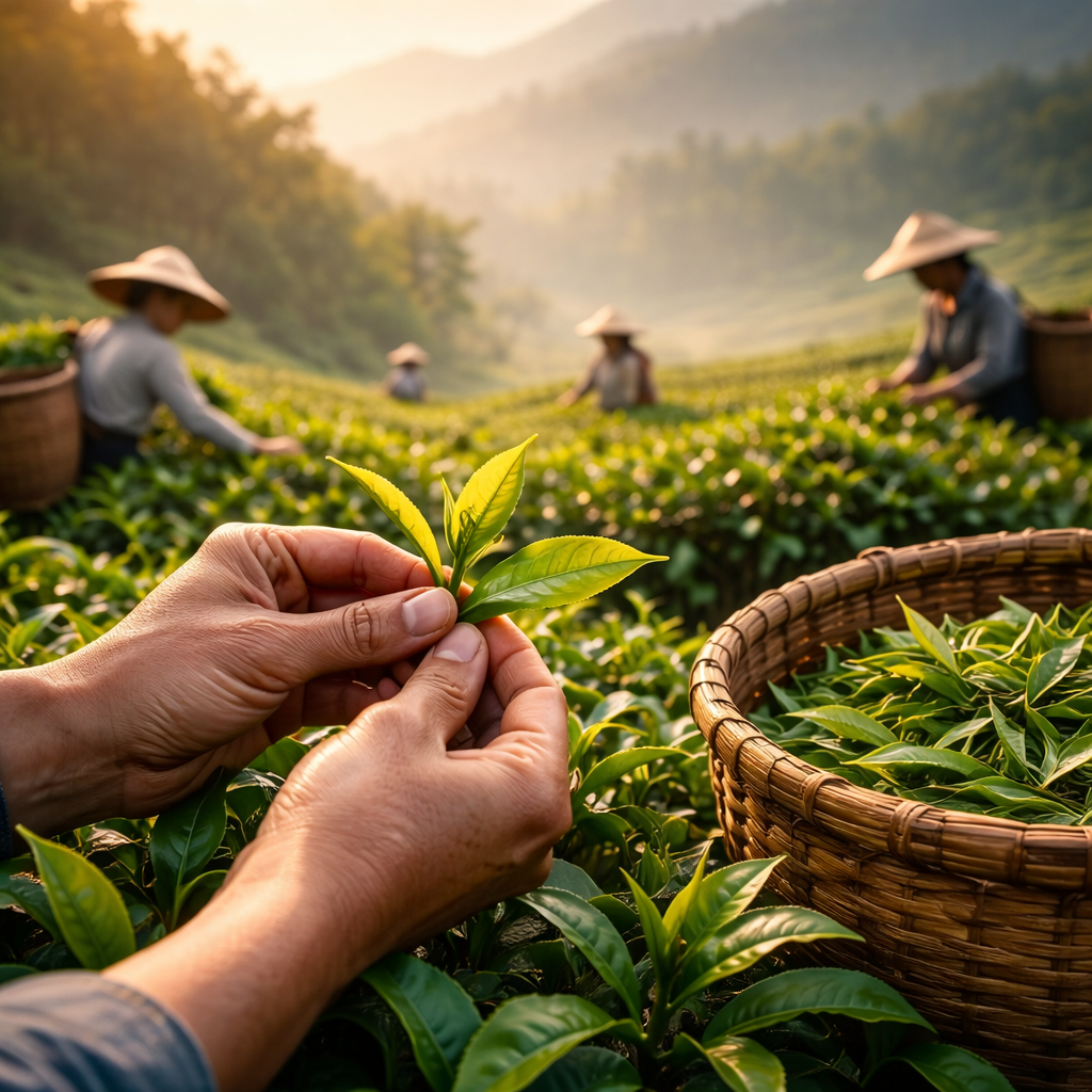 Каждая чашка чая начинается не с чайника и не с заваривания. Она начинается на тихих склонах гор, где среди тумана растут чайные кусты. Там, где первые лучи солнца только касаются листьев, люди уже выходят на плантации, чтобы собрать то, что позже превратится в ароматный напиток.